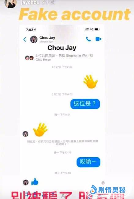 许是因为杰伦的网络动态太活跃,竟然有人冒充他在社交平台跟人打招呼。聊天内容也格外亲切,十分紧跟潮流的发表情say hi。能得到自家爱豆的翻拍回复,而且还是这么亲切和热情,这得让多少粉丝跟着心动~