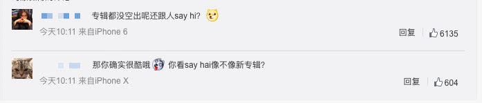 另外一边,催专小队也紧跟而上。粉丝直接否认杰伦亲切说,打出催专牌,暗戳戳“黑”爱豆专辑都没空出还跟人say hi,这位朋友你真的很行!还有粉丝直接表示,你看“say hi”像不像新专辑,还别说这专辑名字真不错,周董可以考虑一下。