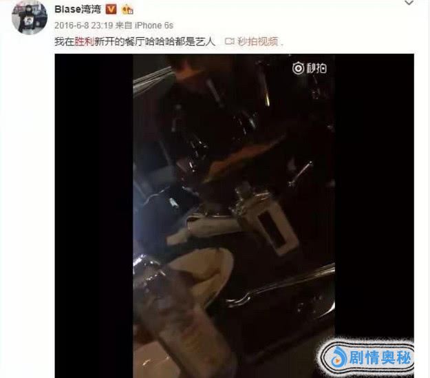 2016年6月,湾湾曾发微博写道:“我在胜利新开的餐厅。哈哈,都是艺人”。