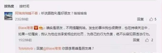和李雨桐类似,湾湾在3月14日当天也就胜利事件做出回应。因为有网友在其微博下留言询问她是不是胜利的好朋友,湾湾则回应道:“确实是朋友,但发生此事我也很震惊。如果一切属实,我认为他应当承受相应的处罚,为自己的行为负责。”