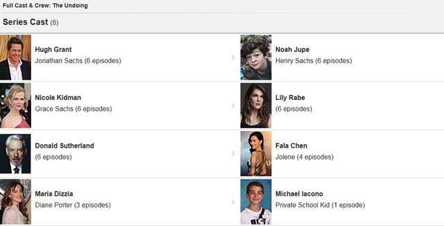 而陈法拉这次在《The Undoing》这部剧中将会与英国男星Hugh Grant、金球奖影后Nicole Kidman以及加拿大老戏骨Donald Sutherland等这些知名演员合作,而通过目前相关网站公布的资料来看,在这部六集的美剧中,陈法拉将有四集的戏份,也算是一个比较重要的角色。