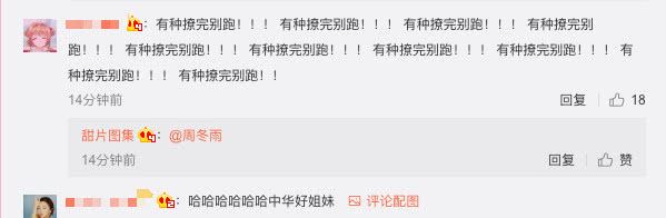 也有粉丝点赞二人的姐妹情,还呼喊周冬雨撩完不要跑,也是资深的吃瓜群众了!