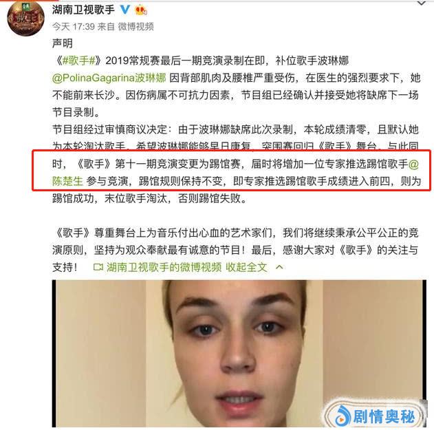 这次可以说是波折也比较大,最近发布了一个重磅消息,外国歌手波琳娜因为身体原因不能参加下一场录制,成绩清零,也就被节目组“默认淘汰”。确实非常让人遗憾,也希望小姐姐能够好好的养好身体,希望在复活赛中还能够回到这个舞台上。