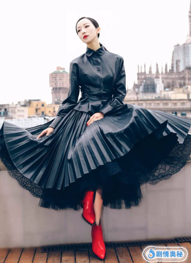 韩雪的裙子是比较长的,显得她的身材很好,这裙子还有点蓬松的感觉,上面她穿了一件黑色的皮衣,是比较紧身的,她的身材超级好呢,还搭配了一个比较精致的妆容,这身衣服显高,种草!