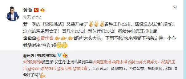 时至深夜,大家晚上好,今晚的娱乐圈焦点只有一个,没错,它就是《极限挑战》,今晚《极限挑战》第五季公布了新成员名单,有迪丽热巴,有岳云鹏,还有雷佳音,有新人加盟,自然也有老人离开,选择离开《极限挑战》的是黄渤和孙红雷,至此我们熟悉的极限男人帮六人组不复存在,和《奔跑吧》一样,鸡条也变了味。