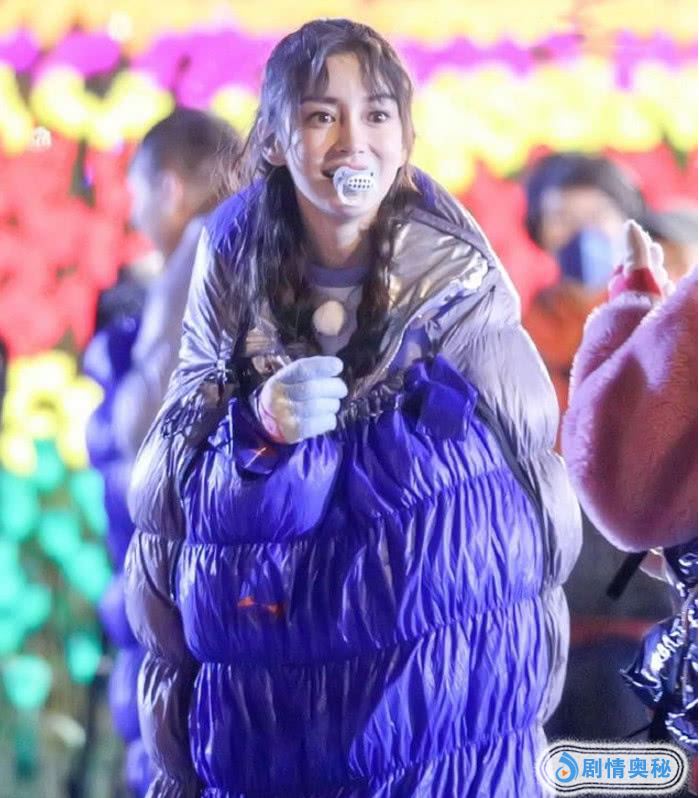 不过这个棉袄看上去却很像“棉被”啊,看上去保暖真的挺好的。不知道是在做什么游戏环节,还让她含着奶嘴,而且受伤的手套想必也是做游戏的时候需要的。看着她在寒冷的零下5度拍摄节目,也是很敬业啊。虽然对很多人来说,这个温度并不算是特别的冷,但是可以看到她俩面穿的是个很薄的卫衣。