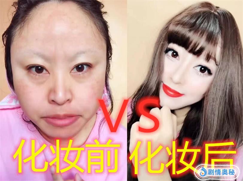 最后这个就有点太可怕了,她素颜的样子非常的丑,而且脸盘子也是非常大的,然后也没有眉毛,但是他在化妆之后,不仅贴了假睫毛,而且也画了个口红,好像也戴了一个假发,两侧的头发把脸修饰得非常的小。这大概就是化妆的魔力吧。