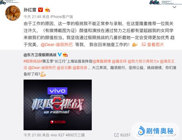 我们翻看孙红雷老师微博的时候也可以发现,他提到了不能正常参与录制以及抽查工作,那也就意味着我们其实还是能在新一季看到孙漂亮回归的。作为要离开的前辈,孙红雷还十分贴心的力挺新成员迪丽热巴,称她是新的颜值担当,相当暖了!
