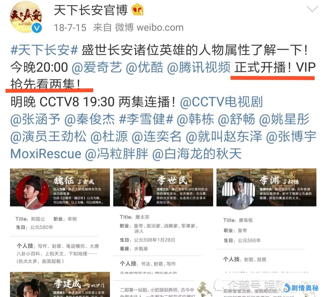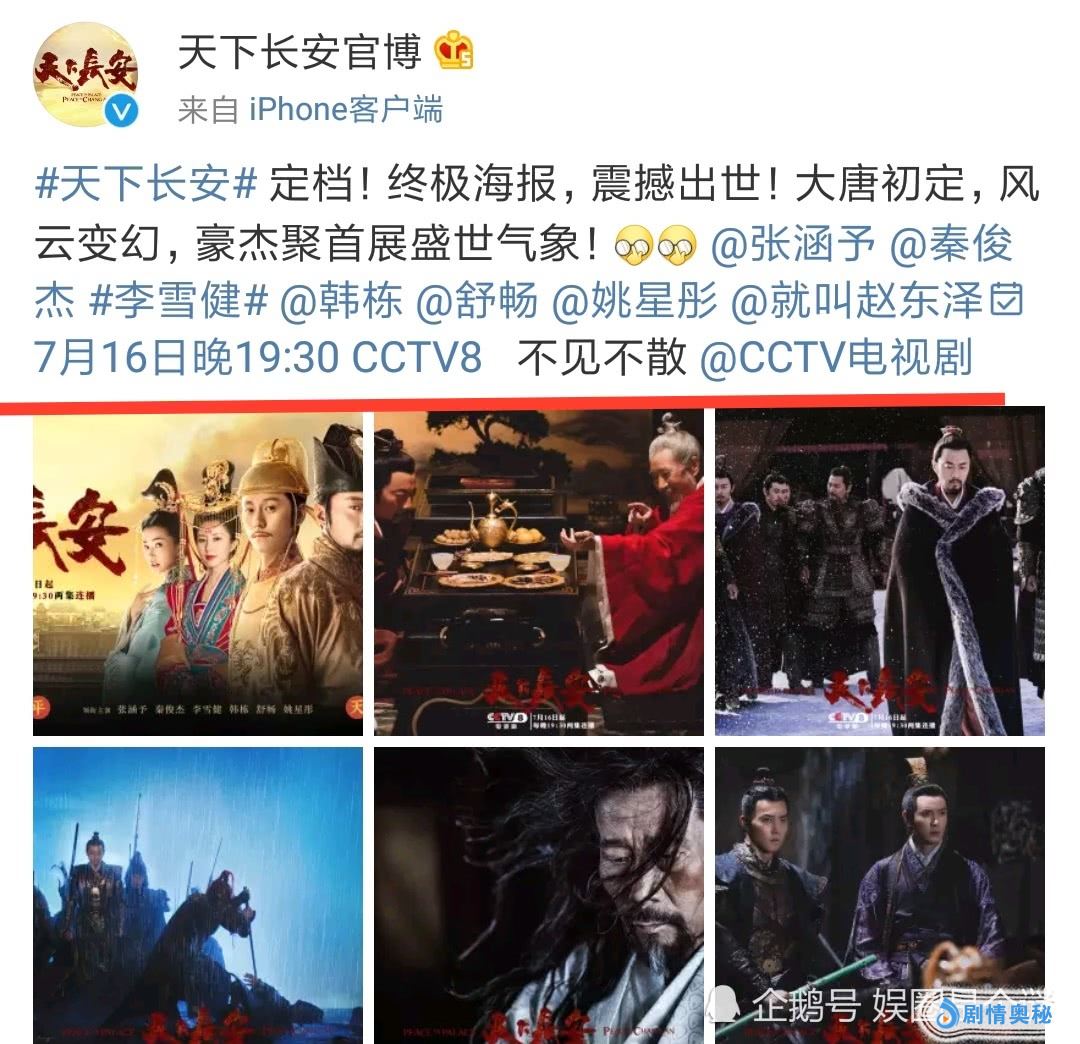 但好好的历史正剧被搁置了,也不止这一点问题。前有女二买通稿抢女主,后又有剧方阳奉阴违。去年7月,剧方官宣定档,还是央视的黄金档。久违的历史正剧,又是央视的大平台,本来《天下长安》很受期待。但剧方开播前两天,突然宣布网播提前看两集,这一举动惹到了央视,之后央视删掉了关于《天下长安》的所有消息,并就此搁置。