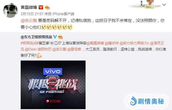 对于今年即将播出的《极限挑战》,唯一的安慰,大概就是黄磊可能还会录几期节目,而不是在一开始,我们就一个也看不到了。不过,黄磊大概也录不了几期。当然,在微博中,黄磊也说,会不定期回来查岗,而粉丝现在心里想的,是希望你们经常回来。至少,我们还有个盼头。