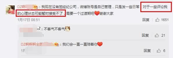 不过,即使是这样也并没有完全阻止一些人对刁卓的攻击,对此,刁卓在与网友互动时也曾吐露心声表示“对于评论我的心理状态可能暂时接受不了,需要一个过渡期吧!”之后她与男友胡先煦也是传出分手消息。