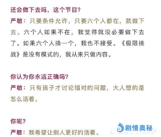 不仅仅孙红雷和黄渤退出了《极限挑战》,连节目组的主心骨总导演严敏也选择了离职,原来严敏早就观众粉丝做出了承诺,严敏表示如果《极限挑战》六位男人帮都不在了,那节目也没有做下去的意义,如果六位男人帮中的一人换人了,他也不会接受。因此严敏信守承诺选择离开《极限挑战》剧组。