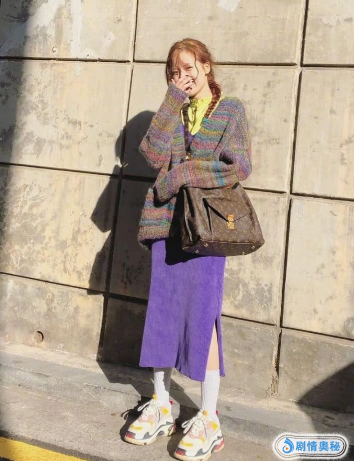 泫雅不仅拍杂志好看,她本人还很瘦,所以她穿衣服是很潮流的,她穿了一件绿色的打底衫,她的衣服超级简单,外面穿了一件条纹的毛衣,穿起来也是很时尚的,她的打扮超级时髦,还穿了一条紫色的裙子,开叉的设计,看上去就更加性感了。而以前泫雅都是穿5000的鞋,像她都是穿着这种巴黎世家的老爹鞋,价格是很贵的。