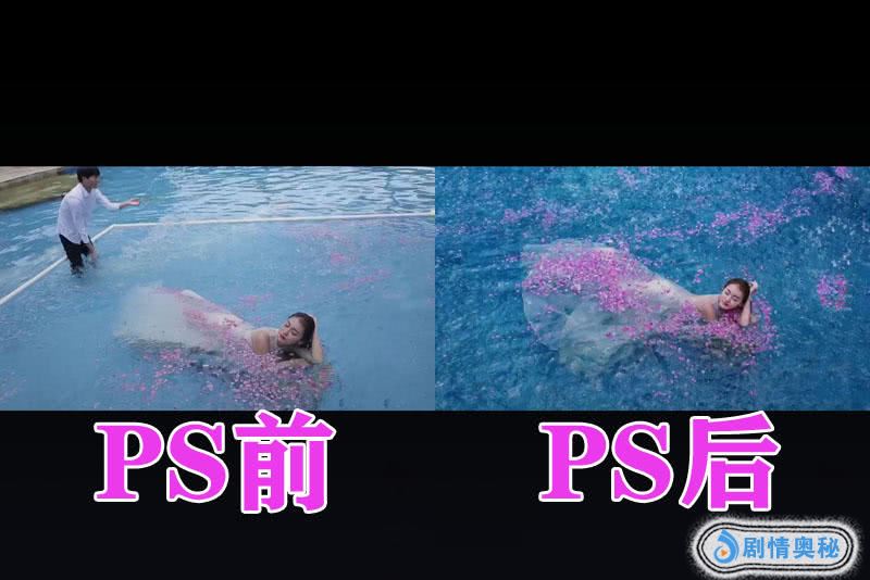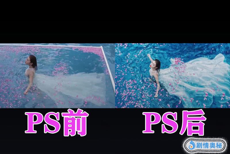然后我们来看一下第3张照片吧,这张照片的主体——新娘在水里走动,还有花瓣的衬托,但是没有PS之前我们没有那种意境,在PS之后这张照片变得非常的唯美,就像是天女下凡一样。