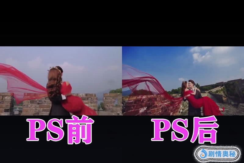 接着我们来看一下第2张照片吧,我们可以看到这张照片在PS之前也不是很美观,但是这张照片在PS之后,我们可以看到这张照片非常的突出,新娘子身上的红纱非常的飘逸,非常抢眼,夺人眼球。