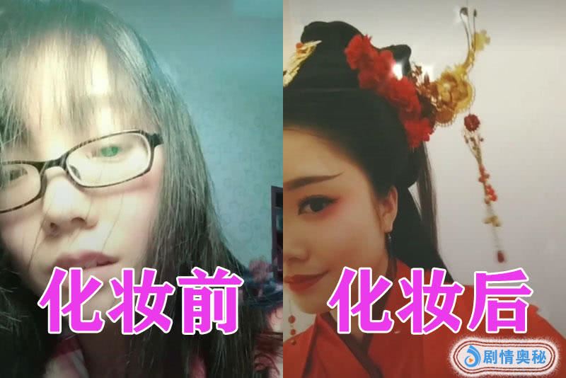 接下来我们能看一下第2张照片,这张照片中的小姐姐在没化妆之前显得有点沧桑,头发披到脸上感觉非常的憔悴,但是他在化妆之后,我们可以看到她画的应该是古装吧,我们可以看到他在化妆之后是非常的漂亮很有气质,完全就是不像同一个人。