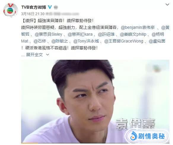 聊回这部剧本身吧,上面说到了阵容豪华,除了外援惠英红、姜皓文外,TVB自家主力也来了不少,其中男一是袁伟豪,TVB力捧的小生之一,近几年很多大制作都有他,之前《城寨英雄》段迎风的表现就颇为亮眼,但我最喜欢的还是《使徒行者2》里的天堂哥,这一次在《铁探》这么重量级的剧里当男一,压力应该不小不过相信“牙佬”不会让大家失望的。而除了袁伟豪外,这部剧还有黄智贤、蔡思贝、杨明、梁烈唯、王君馨等,都是近几年在各种TVB剧里挑大梁的,所以说阵容确实颇为豪华!