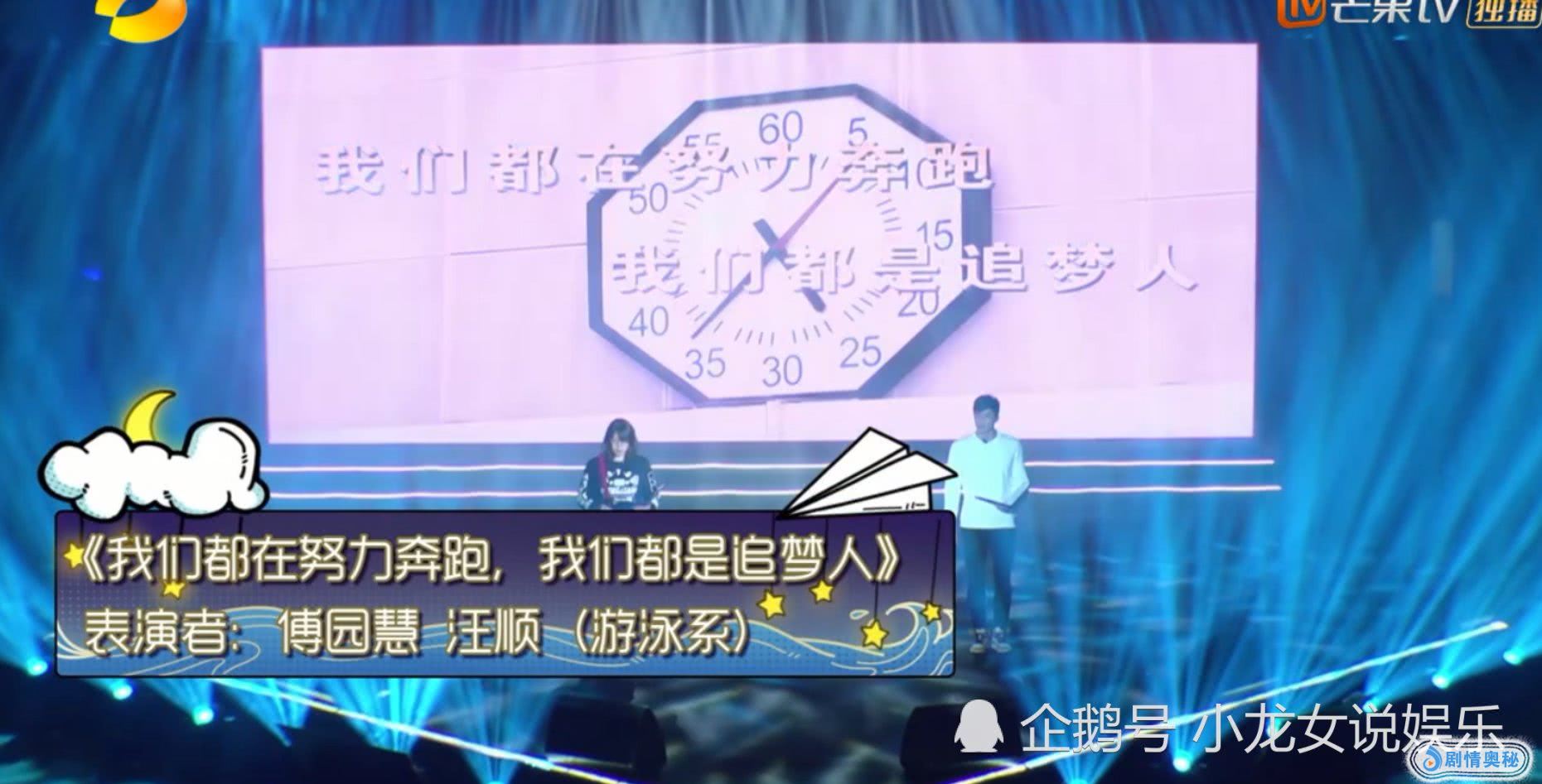 此时的傅园慧也是迟钝了几秒后,就自然的开始朗读,突然的状况导致两人互换了台词,但是表演的还算是圆满!大家都纷纷怒赞傅园慧机智!大家觉得呢?