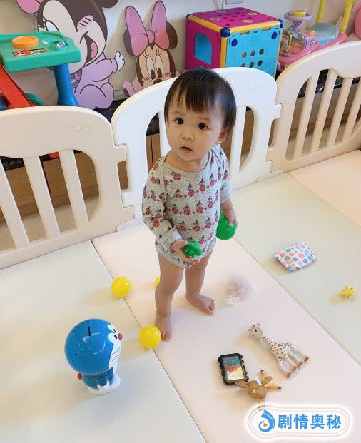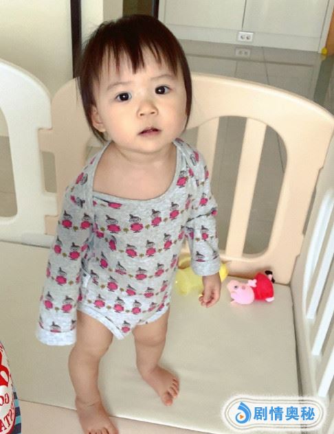 照片中2岁小小爱身着灰色卡通图案连体衣,光着小脚丫站在婴儿床上,睁大眼睛一脸呆萌的望向镜头,简直就是妈妈福原爱的迷你版,十分呆萌可爱。不知道小小爱有没有听懂爸爸的话呢?