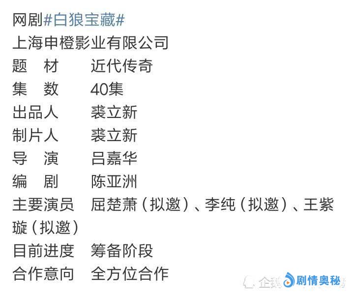 除了这两位之外,《如懿传》当中还有不少知名演员加盟,像董洁、胡可、童谣、屈楚萧、李纯等,这些演员都是出演过不少热播作品的。而据悉,目前有一部近代传奇题材的网剧《白狼宝藏》正在筹备当中,主演拟请屈楚萧合作李纯出演。