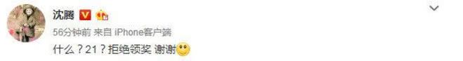 再者也有可能是觉着自己上榜也有点不可思议,所以才这么回复,还顺便拒绝领奖。你觉着沈腾想表达的是哪种意思呢?