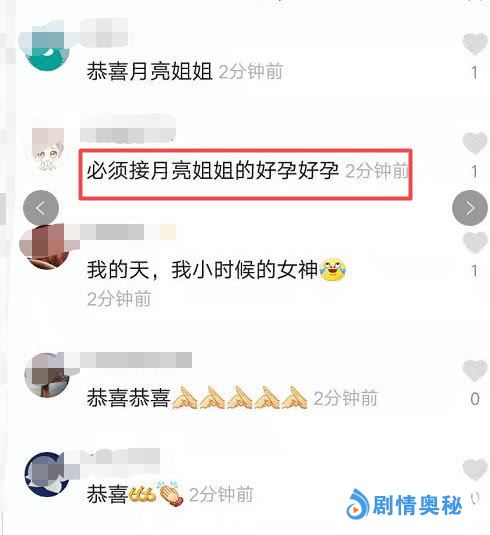 如此一幕再加上月亮姐姐的附文便有不少网友认为这是月亮姐姐在宣布二胎得子的喜讯,评论区网友们也纷纷留言送祝福:“恭喜月亮姐姐”、“恭喜恭喜”、“必须接月亮姐姐的好孕。”