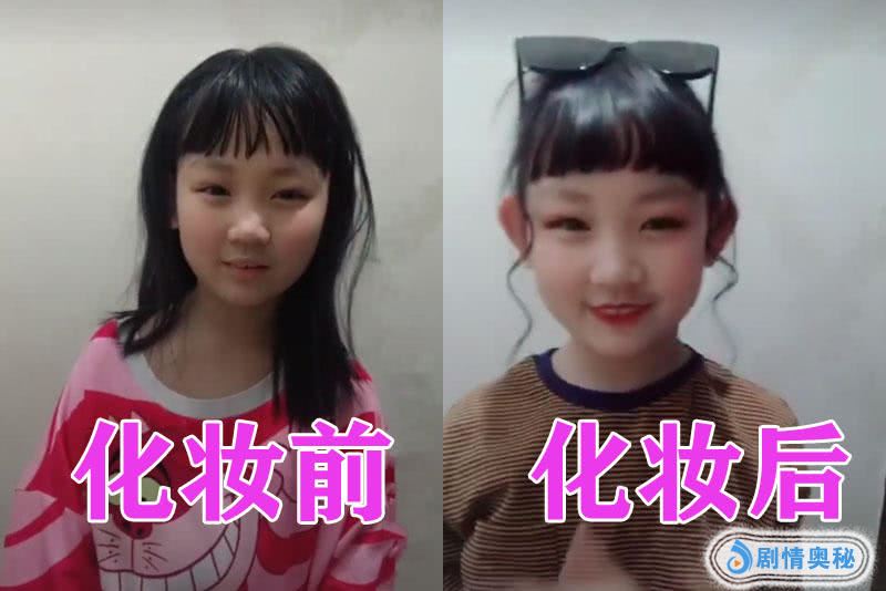 然后我们来看一下第3张照片吧,我们可以看到这个照片中是一个小女孩,我们可以看到她在化妆之前就是非常的可爱,我们可以看到她化妆之后变得非常的时髦,头上还戴着一个墨镜,尤其是她两边的一缕头发,非常得抢眼。