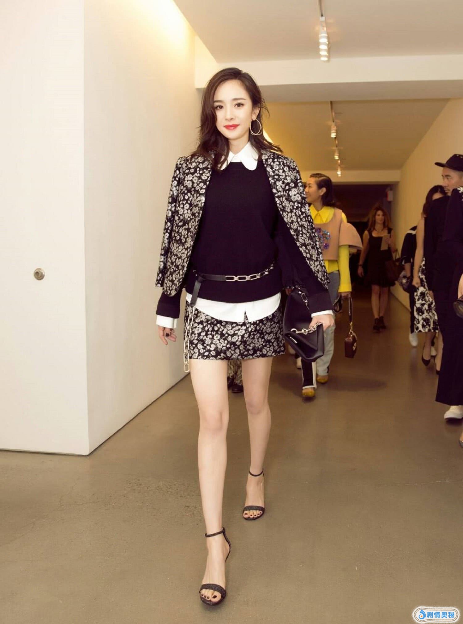 除开腿非常的吸睛以外,大幂幂的这一身穿搭也是非常的好看,穿着一件银亮色的长袖衣,显得她整个人的肤色都非常的白皙透亮,穿上一双黑色带白珠光片的高跟鞋,也是让整个身体的动态更加出彩,这搭配可以说是很棒了。