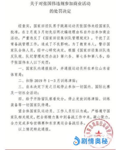近日,国家体育总局田径运动管理中心发布一则关于对张国伟违规参加商业活动的处罚声明,在网上引发网友热议。声明中表示:经查实,国家田径队男子跳高运动员张国伟未经国家队批准,在2月底3月初先后两次编造理由私自外出参加商业活动,严重违反了相关规定,造成了不良影响。
