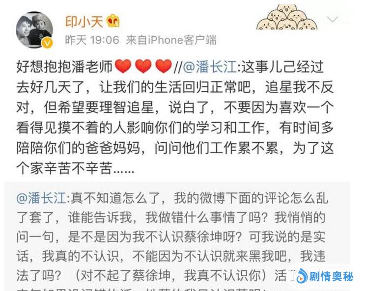 本来以为这件事就到此结束了,结果印小天发文转发了潘老师的这条微博,并且附文安慰称:好像抱抱潘老师,没想到他的微博评论区翻车了,网友纷纷表示:你这时候凑什么热闹。