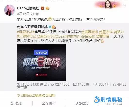 提起《奔跑吧兄弟》小编不禁想起极限挑战,不过相信有很多人都知道,其实如果是放在之前的时候,极限挑战和迪丽热巴几乎是没有任何机会能够放在一起的。但是大家也应该都追到就在其几天的时候,极限挑战的官方微博宣布的极限挑战里面的两个常驻嘉宾黄渤和孙红雷两个人退出,然后换成了迪丽热巴,岳云鹏和雷佳音。