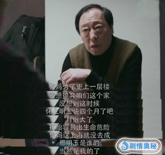 最近终于苏大强松口了,对着大儿子苏明哲说出了真实的原因,原来是苏母在参加同学会的时候遇到一个老相好,能够在上海医院解决自己的工作问题,于是想要跟着他走,结果没有想到却意外怀孕了,因为身体原因不能打胎就留了下来,也失去了这辈子唯一能翻身的机会。