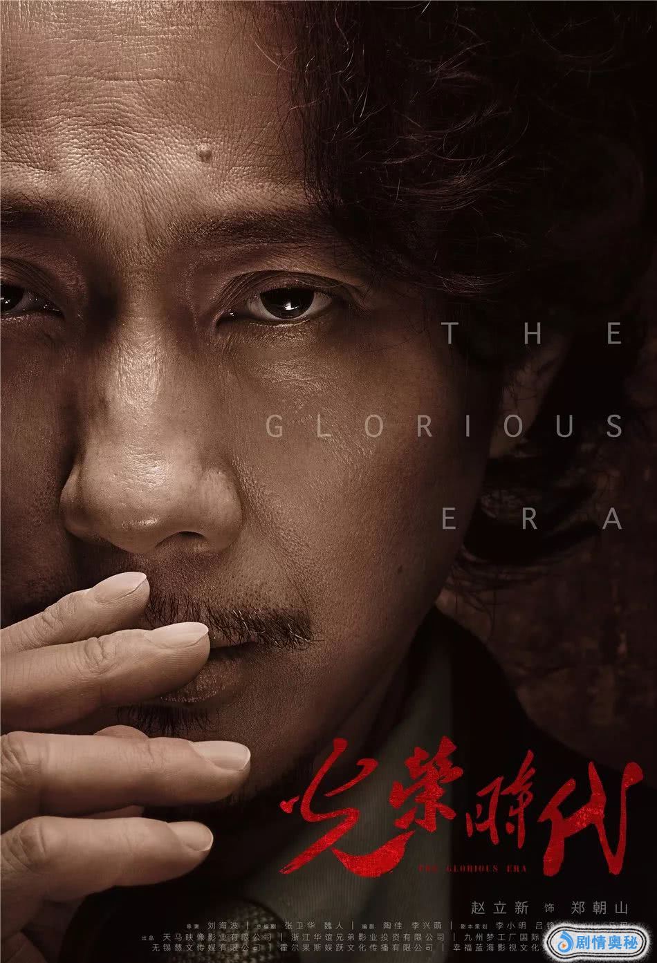 高噪点的质感风格下,毛体书写的剧名“光荣时代”四个字立于海报右下方,恣意纵横的红色字体在厚重的色调背景下极富视觉冲击力,洋溢着驰骋的生命感。