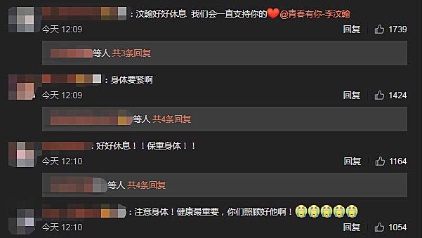 听说这次导师合作舞台会有特别福利的,不知道这次缺席会不会对李汶翰后面的比赛有影响? 虽然遗憾不能跟张PD同台,但网友们依旧坚持他的决定,纷纷表示:“汶翰好好休息 我们会一直支持你的”“身体要紧啊”“好好休息!!保重身体!!”“注意身体!健康最重要,你们照顾好他啊!”