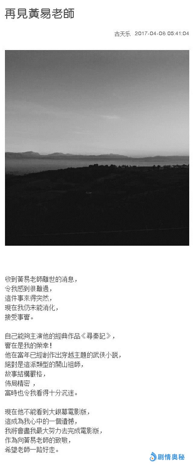 《寻秦记》是黄易的经典作品,因为当年出演这部电视剧令古天乐人气飙升,更因此跳入电影圈,成就了今天的地位。所以他当年买下了《寻秦记》的版权欲开拍电影版,不过黄易在2017年因病离世,古天乐当时在悼文中就表示一定会尽最大努力完成电影版《寻秦记》,而他也没有食言,2019年终于将这个承诺兑现。