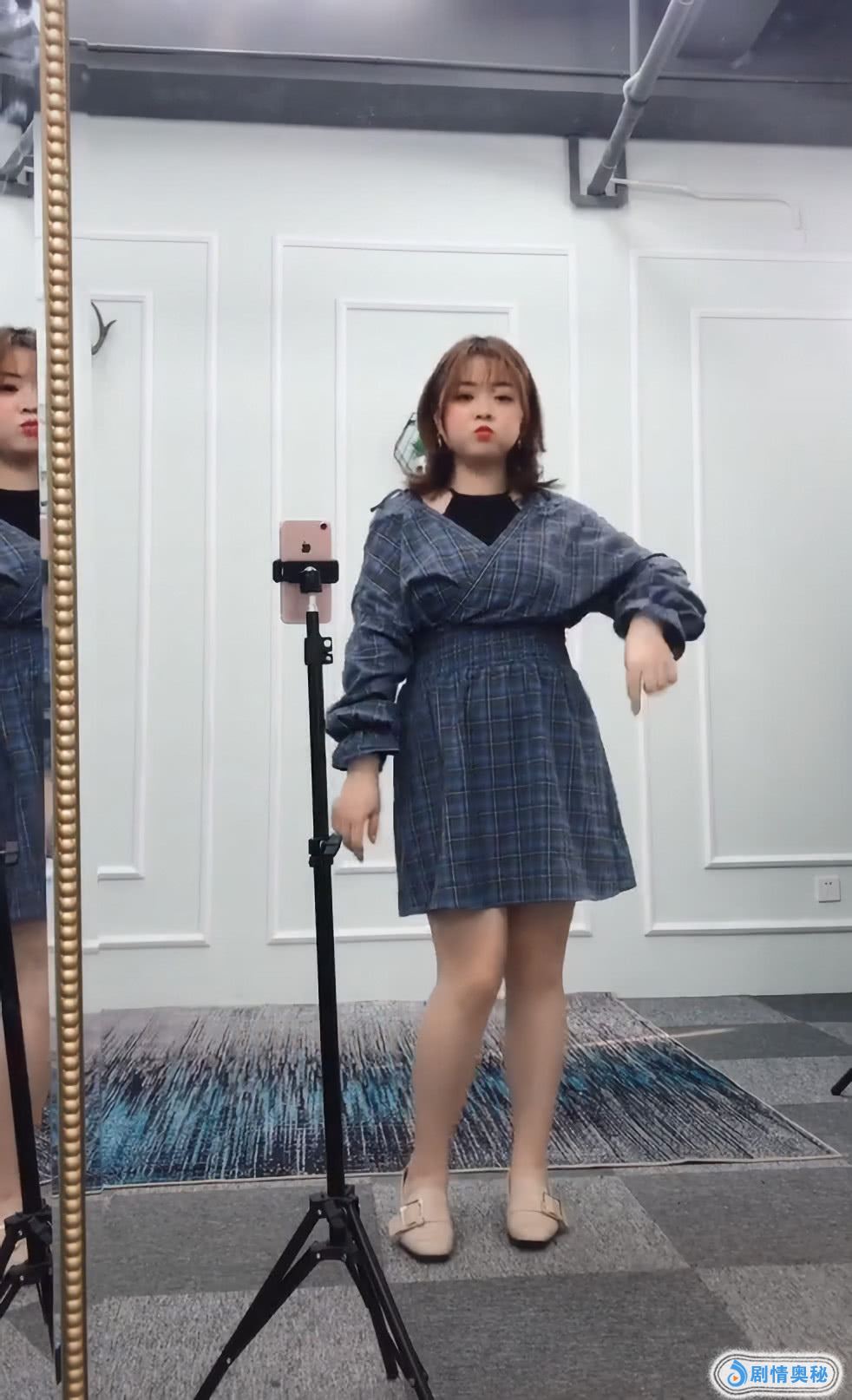 小姐姐的身材有点微胖,她穿了一条深蓝色的格子连衣裙,裙子是背心的款式,穿上去很时尚,这裙子还有露肩的设计,看着就更加性感了,她的身材是很一般的,但是打扮起来还不错,穿起来很美。