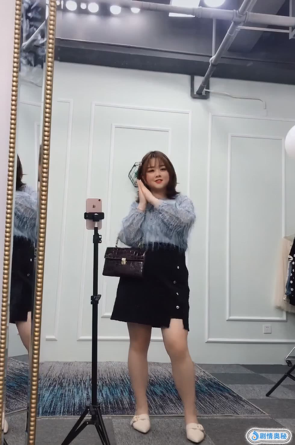 像这样的打扮,怎么穿都好看,就算这位小姐姐有点微胖,不过她穿起来也很美,上面她还穿了一件羽毛的上衣,搭配了一条黑色的短裙,她的裙子是比较短的,显得她的身材很好,这身打扮很美!