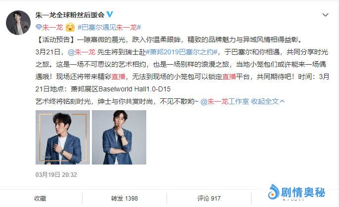 凌晨朱一龙晒出自己在飞机上的照片,并且写道:先睡他个自然醒,晚安。那么朱一龙此行的目的地是哪里呢?没错,就是巴塞尔,据悉朱一龙将在本周四前往瑞士,参加2019年巴塞尔之约,不只参加这场盛会,朱一龙还即将现身直播间,当地的“小笼包”有机会现场邂逅朱一龙,无法到达现场的“小笼包”则可以在直播间看到朱一龙温暖的笑容。看到这则好消息,评论区的粉丝太调皮,我们来看看“小笼包”都说了什么吧!