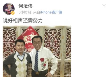 日前,相声演员何沄伟晒出了一张与恩师侯耀华的合照,并配文称:说好相声还需努力。照片中侯耀华和爱徒何沄伟勾肩搭背,看起来非常的友爱,尽显师徒情深,72岁侯耀华风采不减当年,看起来精神饱满。这也是继前两天何沄伟打假之后,首次发声,算得上是对自己的勉励。原来,前两天一位名为“何沄伟·”的用户,冒充何沄伟的名义诋毁德云社,更可恨的是还@了曹云金,苗阜,侯耀华和姜昆等人,呼吁大家要团结起来。
