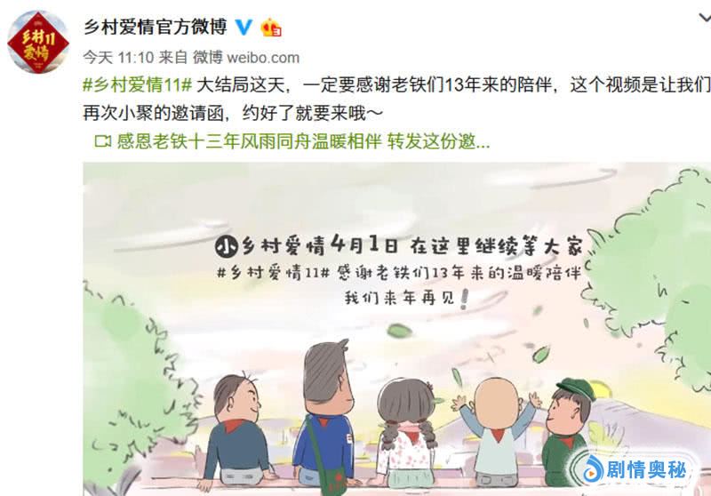 同时《乡村爱情11》官方媒体发文,对十三年风雨同舟温暖相伴的铁粉们表示感谢,同时还发出了一份视频邀请函,邀约乡迷在4月1日愚人节当天小聚,也正式宣称明年再见,看来正如编剧李海兵所称,第12部可能真的要拍了。