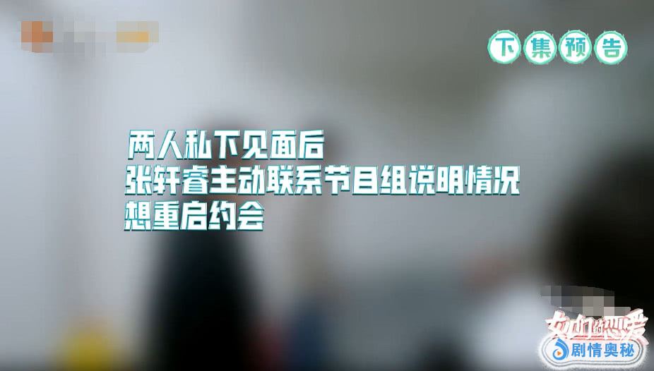 任家萱为了要让张轩睿更好过一些,这一次她选择先离开,把背影留给对方,这样看起来会更决绝一些吧。在摄像师的镜头下,任家萱一边哭一边在说着自己喜欢的这个男孩子果然没有让她失望。故事到这里你以为真的要结束了?不,事情发生了转机。还有戏!在张轩睿退出节目不到一天的时间,他主动联系节目组提出要和任家萱重启约会。张轩睿这个举动也太男人了吧,一定又是圈粉不少了。