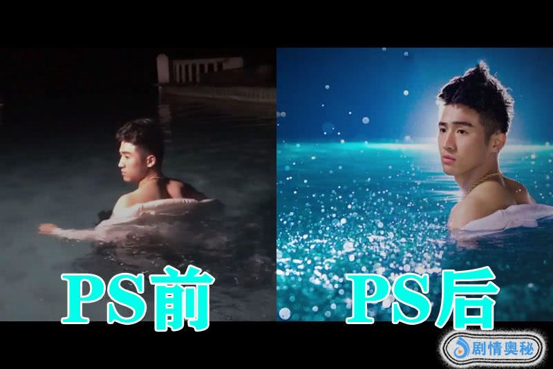 最后我们来看一下这张照片吧,这一张照片就比较诱惑了,是一位小哥哥在水池里游泳的场景我们可以看到在没有PS之前这张照片的亮度不是很足,但是这张照片在经过PS之后,我们可以看到这张照片的效果是非常的好,显得这位小哥哥非常的清秀,感觉自己快要恋爱了。