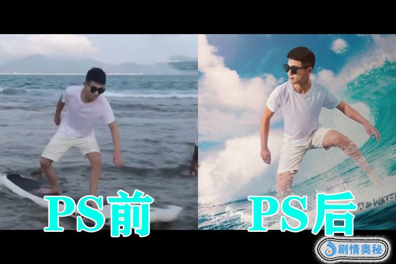 接着我们来看一下第3张照片吧,我们可以看到画面中是一位小哥哥这样冲浪,这片子之前这张照片是没有任何的看点,是一个非常普通的一张照片,但是这张照片在经过PS之后你可以看到,把小哥哥p得非常的帅气,在大海中肆无忌惮地狂游。