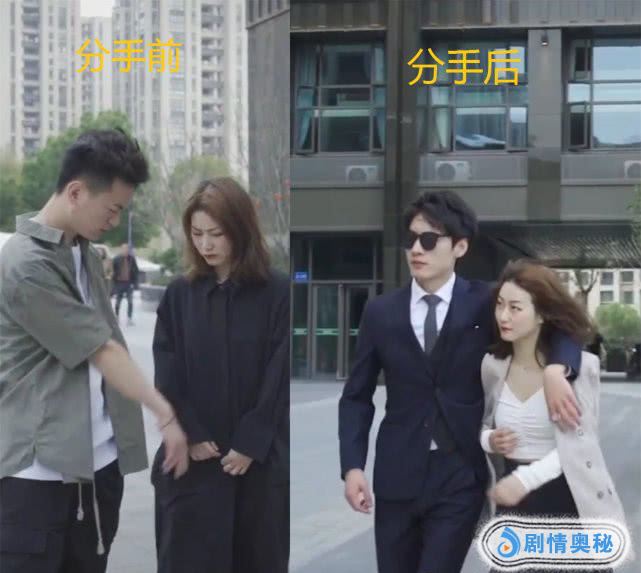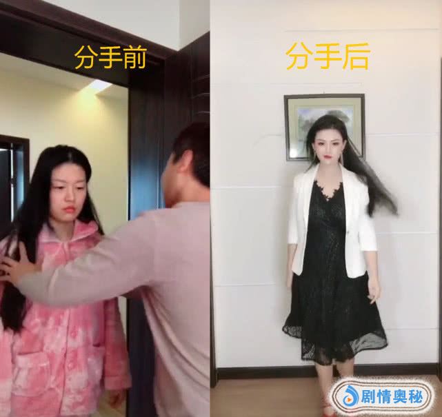 首先来看第一组吧,左面的是还没有分手之前,当时是一对男女朋友,女孩子穿着一身的黑色的连衣裙,一身的打扮也是不错的呀,可是旁边的男朋友却在对着他的衣服在那里指指点点的,女生都很愧疚的低下了头,马上画面一转,两个人分手后,女孩子又教到了新的男朋友,现在的她不仅出穿着大变,也变的更加有自信了