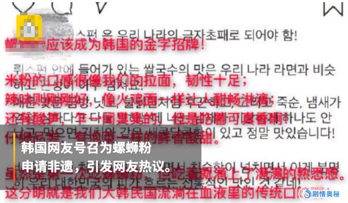 除此之外,局数据统计。广西柳州手工制作螺蛳粉技艺,就已经被录入广西壮族自治区级非物质文化遗产名录。对于螺蛳粉要被韩国人申遗的事件。柳州螺蛳粉协会的会长也做出回应:螺蛳粉能被世界关注是好事,但螺蛳粉已获得国家地理标志证明商标,泡菜国要抢过去,认为是不可能的。