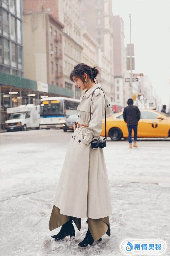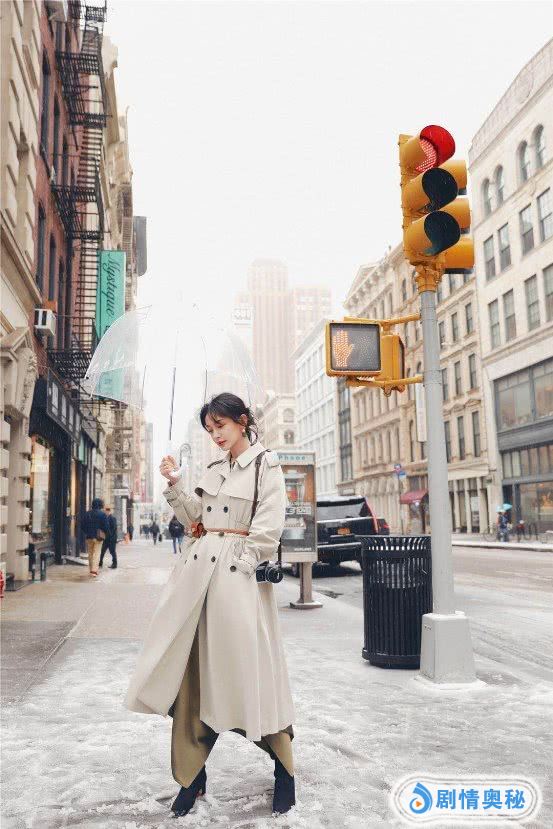 近日,施诗曝光了一组时尚街拍,照片中的她身穿设计感极强的卡其色风衣搭配裸色系妆容,外搭复古质感的咖色腰包,翡翠绿耳饰点缀更显优雅,侧颜精致的她莞尔浅笑,雪中撑伞漫步于纽约街道,风吹乱发丝明媚动人,施诗将英气与优雅完美融合,一颦一笑流露出迷人的知性气质。