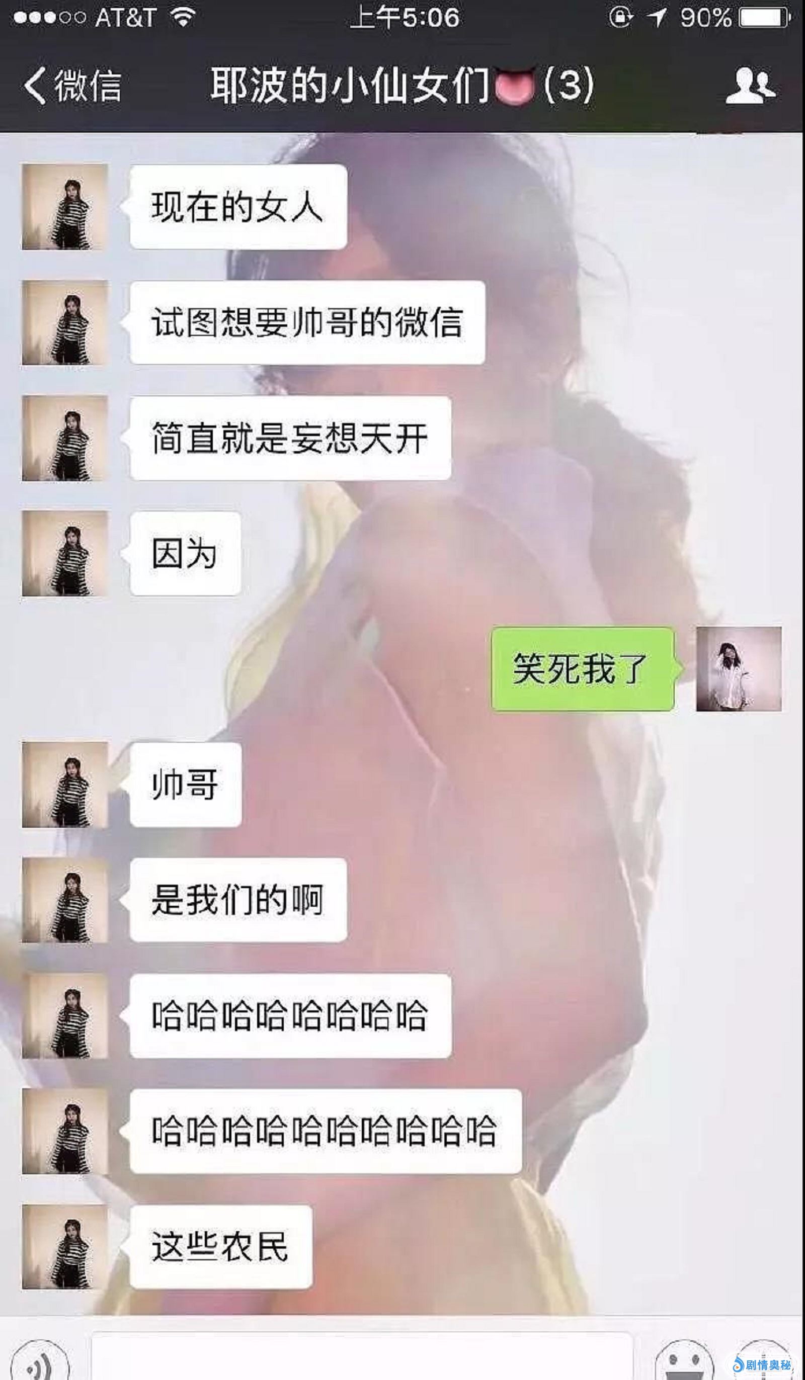 后边在她的闺蜜群里边,还歧视平民女孩,直言她们是农民,不配跟帅哥在一起,真是牛呢。看着长得挺好看的,但是没想到说话素质竟是如此。利用着上流社会的身份,让普通的平民女孩追捧,却由以此贬低她们,太过分了吧。