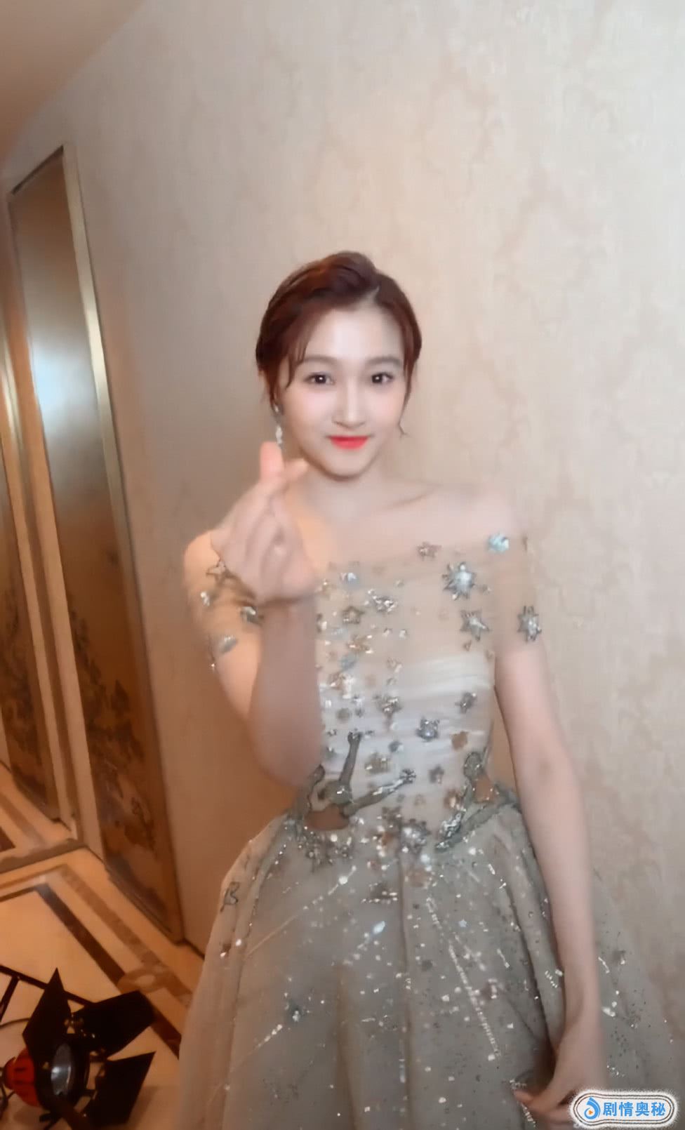 关晓彤的裙子还有像一字肩的感觉,她的裙子很好看,上面是透视的纱网,非常时尚,戴着银色的耳环,增加了几分光泽感,她还搭配了一个比较优雅的发型,看上去她的身材绝了,好成熟啊。