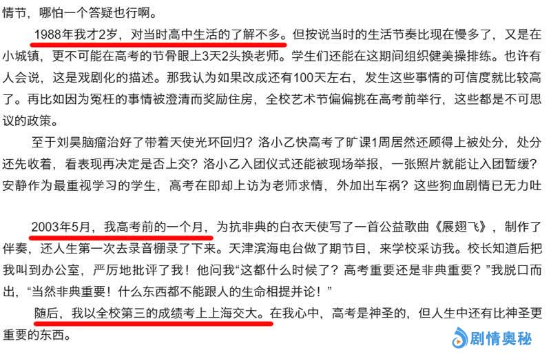 随后,李宏烨又指出了《老师·好》这部电影的几个硬伤,把高考当儿戏,结尾车祸桥段,以及中间穿插的各类感情问题,简直像几个时代各种典型情节,拼成了一个故事。