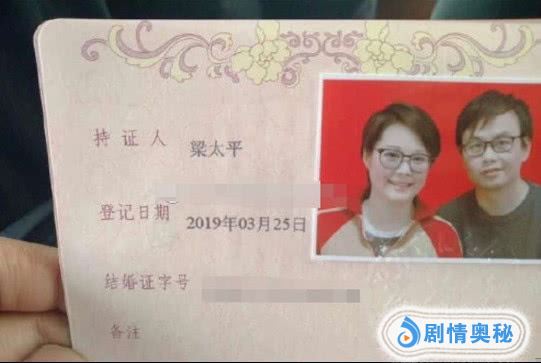 从晒出的结婚证上的确可以看到袁立与他的合照,而且上面还留有结婚证办理人员盖下的钢印。持证人姓名那一栏则写着“梁太平”,而领证登记的时间则为2019年3月25日。